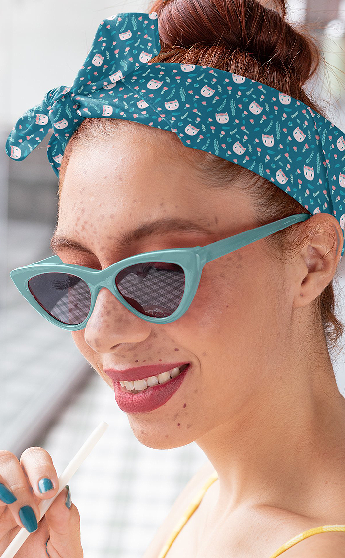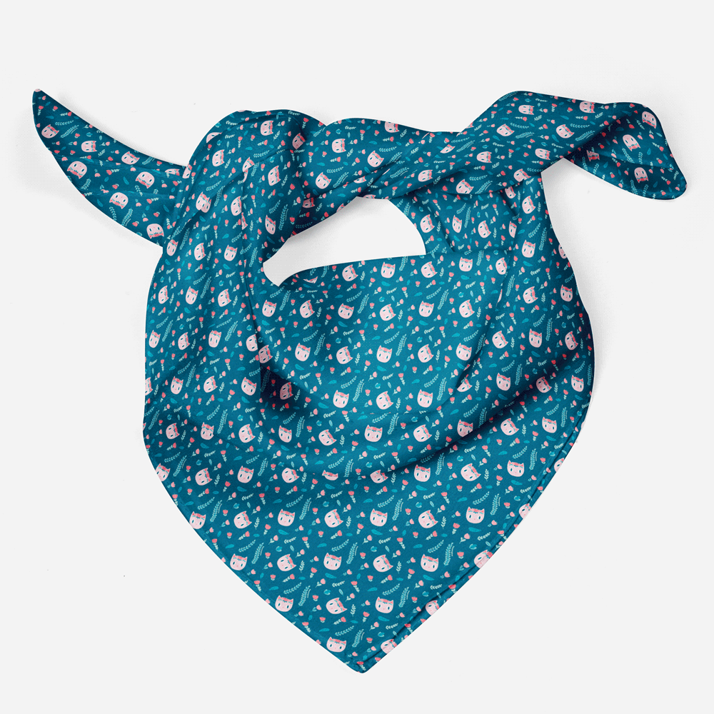 Crafted from 100% silk, our luxurious cat print bandanas are the purr-fect way for cat lovers to accessorize this summer, with a bandana to match any mood! Add a pop of pastel pink to any outfit with our Dancing Cats Silk Bandana, which features a playful pattern of pink cats chasing ribbons through a sky of cotton-candy pink. Feeling more floral? The Floral Cat Silk Bandana Scarf sports a bounty of flower-crown-wearing cats amidst a field of pastel green leaves. And if you’re feeling more adventurous? Our star-studded Space Cats Silk Bandana Scarf will have you ready to explore a galaxy far, far away.